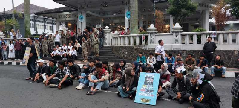Kuningan,-Ratusan Aktivis Anak Rimba (AKAR) dan pegiat lingkungan dari berbagai komunitas, termasuk pelajar dan mahasiswa melakukan Aksi Solidaritas atas perundungan aktivis lingkungan oleh penjahat penyadapan getah pinus, di Taman Dahlia depan Teras Pendopo Jl. Siliwangi Kuningan, Rabu (18/02/2026) pukul 15.30 – 18.00 WIB