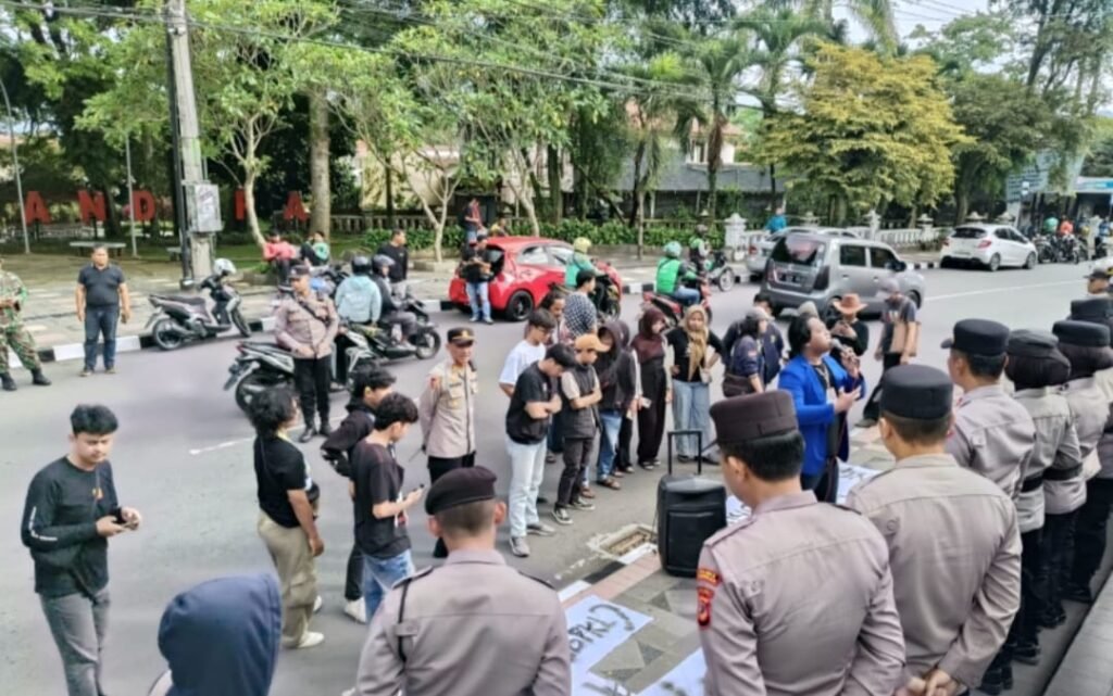 Kuningan,-Suasana bulan suci ramadan tidak menjadi halangan bagi Pergerakan Mahasiswa Islam Indonesia (PMII) Kabupaten Kuningan,. untuk melakukan aksi damai. Mereka bergerak menyambangi Gedung pendopo bertepatan dengan refleksi satu tahun kepemimpinan Bupati Kuningan Dian Rachmat Yanuar dan Wakil Bupati Kuningan Tuti Andriani. Aksi itu digelar di depan Teras Pendopo Jl. Siliwangi 88 Kuningan, Jumat 20 Feberuari 2026 pukul 16.00 WIB. Aksi damai ini mendapat pengawalan aparat kepolisian termasuk anggota Polwan dan satpol Pamong Praja.