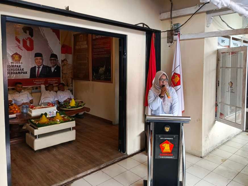 Ketua panitia HUT Gerindra DPC Kuningan Sri Laelasari disela sambutan, menyampaikan terimakasih kepada seluruh kader sudah mensupport kegiatan ini bisa berjalan dengan lancar.